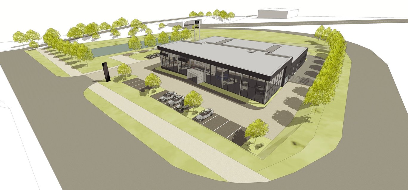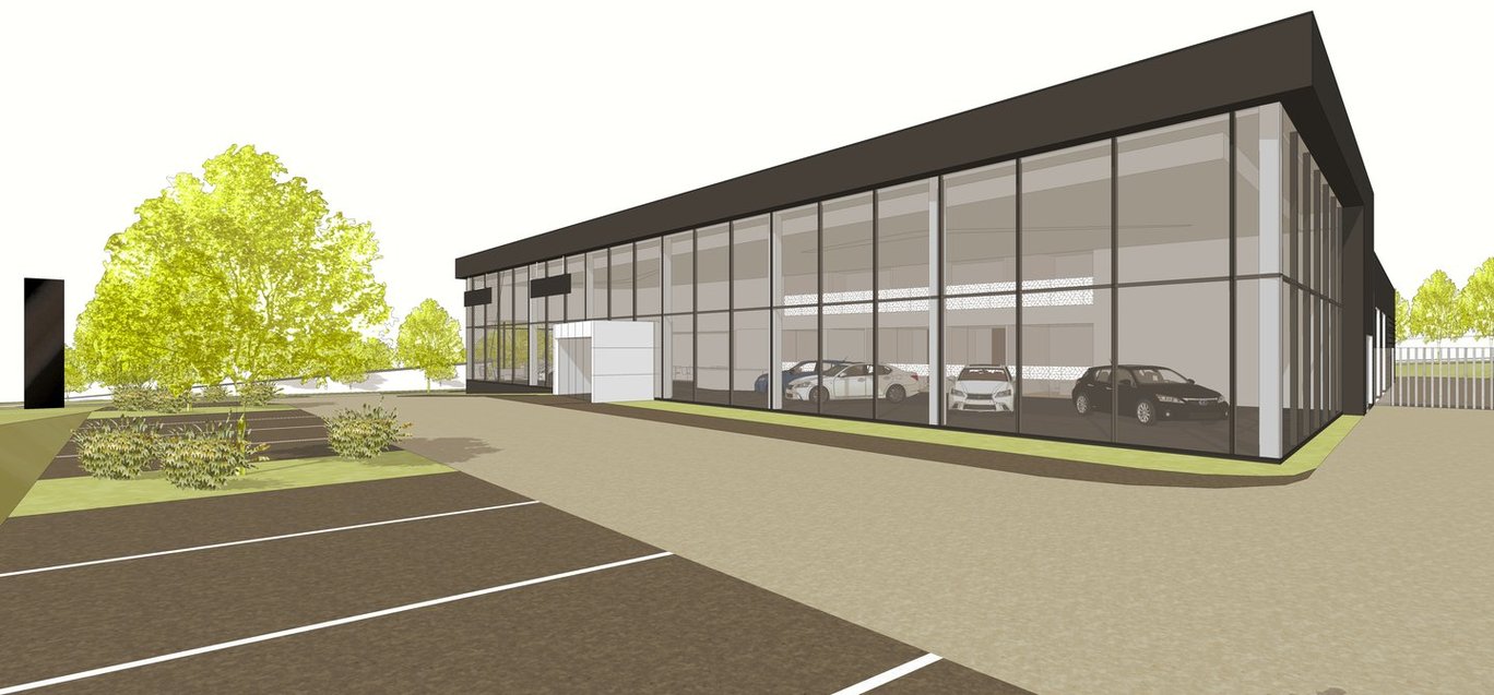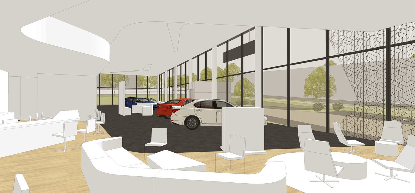 Novostavba autosalonu pro prodej a servis osobních automobilů.