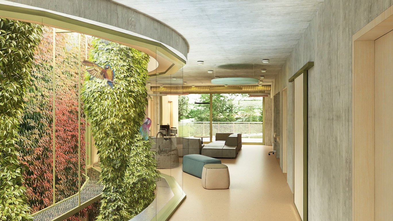 Součástí projektu je i relaxační a produkční zahrada s ovocnými stromy a vyvýšenými záhony. Tento prostor bude plnit nejen funkci odpočinkovou, ale zároveň nabídne klientům příležitost k aktivnímu zapojení prostřednictvím zahradnických a pěstitelských činností.